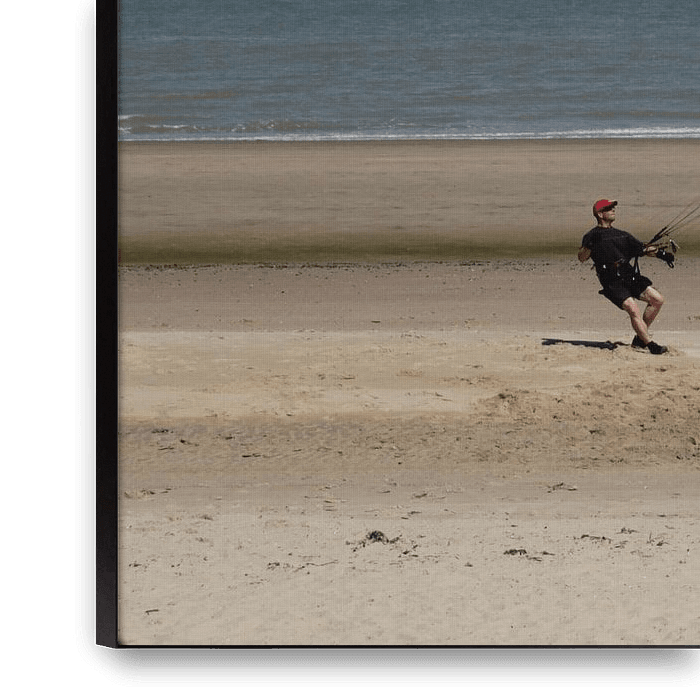 Zeeuwse kust, een kitesurfer doet veel moeite om zijn vlieger in de lucht te houden op het strand.