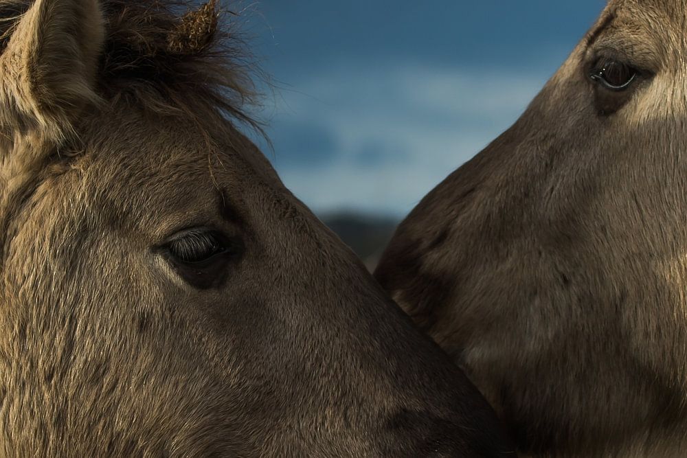 In Meinerswijk near Arnhem, several Konik horses live in the floodplains along the Lower Rhine. These horses are very suitable for floodplains. A strong breed that can withstand considerable cold. This photo was taken in winter just before a big storm. The sky in the background is deep blue and then it fell down in buckets. They hardly mind.