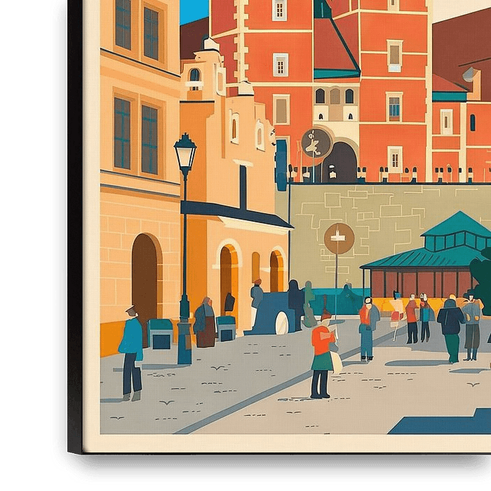The vibrant scenery of Krakow evokes the charm of times gone by. Majestic towers and colourful facades frame the vibrant atmosphere of a city square, alive with people living history. The bright blue sky radiates optimism and invites you to discover the secrets of this fascinating city.