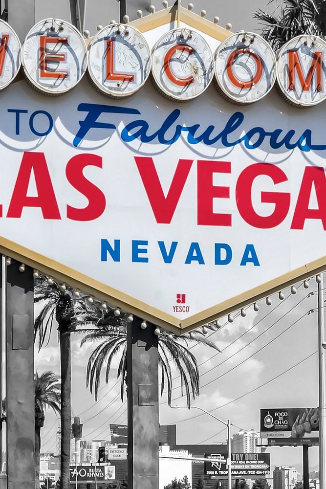 The „Welcome to Fabulous Las Vegas“-sign is located on the median at the south end of Las Vegas Boulevard. It was designed by Betty Willis in 1959 and has been welcoming visitors to Las Vegas ever since. The sign has had to be moved several times due to city expansion. The city's famous welcome sign is one of the few symbols of the past that still exists today, making it a Las Vegas landmark. Typical view from the gambler's paradise in Nevada.