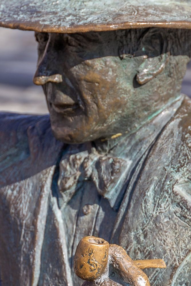 Tribute to Georges Simenon with Maigret's sculpture in the centre of Liège.