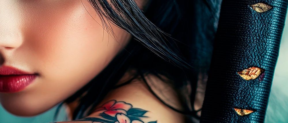With intense eyes and a rigid presence, this strong femme fatale radiates both gentleness and determination. Her ornate tattoos tell stories, while the sword behind her lends an aura of mystery. Ideal for a modern living room, this artwork adds a striking, artistic touch to any room.
