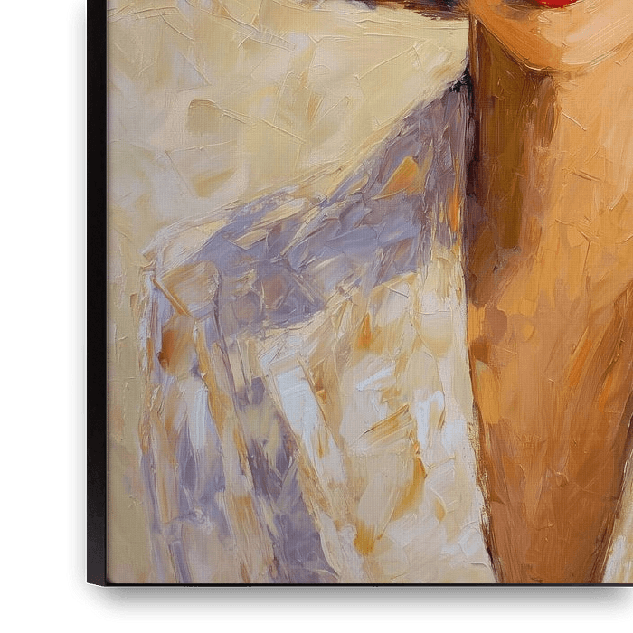 This work shows a semi-abstract portrait of a beautiful woman wearing a large elegant hat in a distinctly summery mood. It is not a classic painting but fine art photography that has been manipulated to look very much like a painting in watercolour and oil. In my studio, I always try to achieve a timeless look in these kinds of images,…