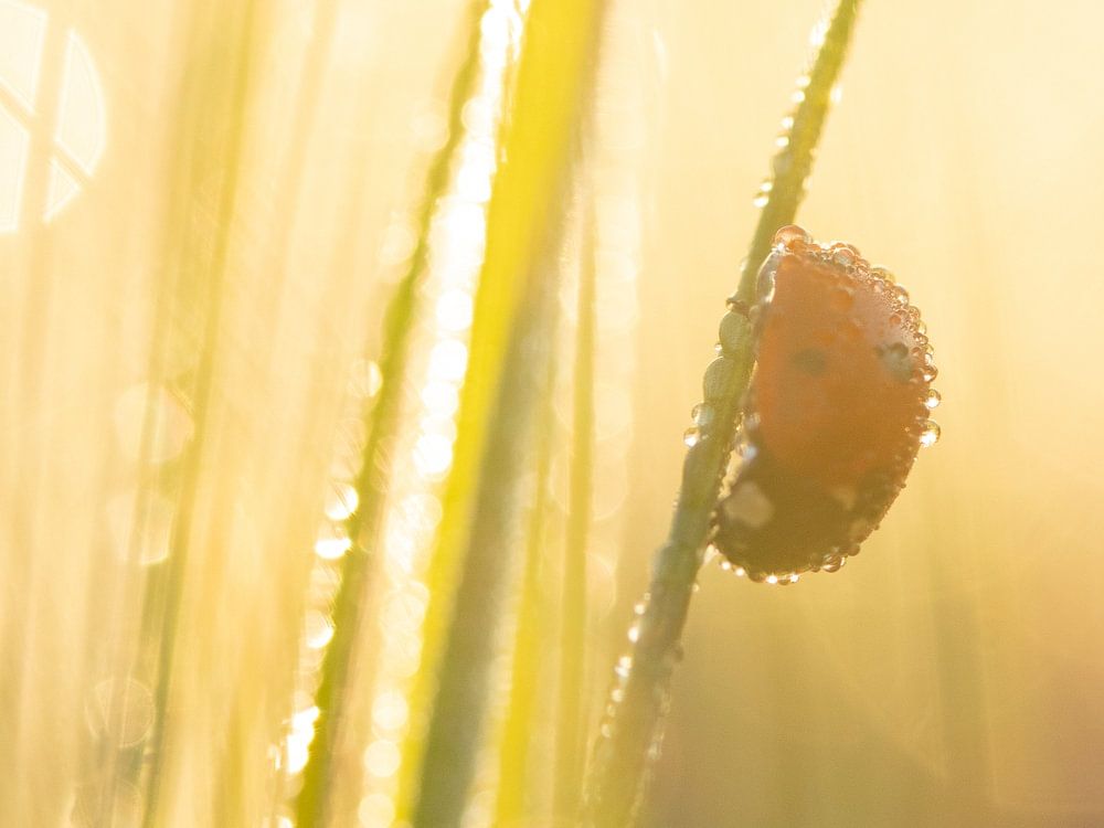Buy the photo Ladybird in the morning light by Maaike Munniksma on canvas, ArtFrame, poster and wallpaper, printed on demand in high quality.