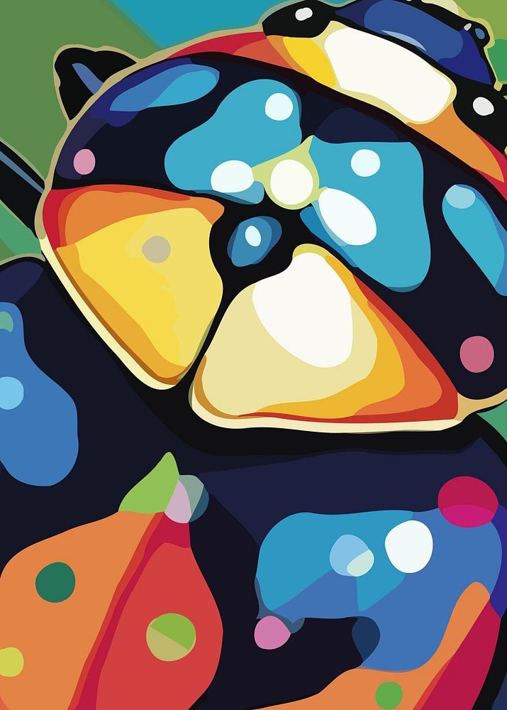 This ladybug portrait transforms the tiny insect into a radiant pop art gem, its iconic spotted shell reimagined with neon reds, purples, and glowing blues. The clean, circular design is enhanced by bold graphic contrasts, making the ladybug appear almost jewel-like. Despite its small size, it becomes a striking modern symbol of luck and beauty. Playful yet sophisticated, this artwork is perfect for nature lovers, contemporary design enthusiasts, or anyone who enjoys small subjects with big personality. The ladybug, in pop art form, turns into a vibrant celebration of charm and positivity.