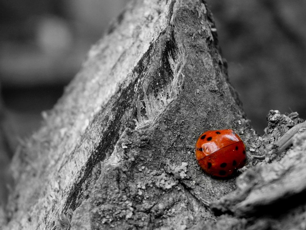 Nothing like an abstract image on your wall. Here you have a black and white photo with a little red 'touch', namely the ladybug.
