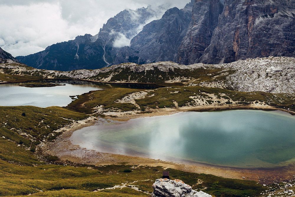 Twee kleine meren in de prachtige dolomieten op bijna 3.000 meter hoogte bij Tre Cime di Lavaredo (Drei Zinnen)