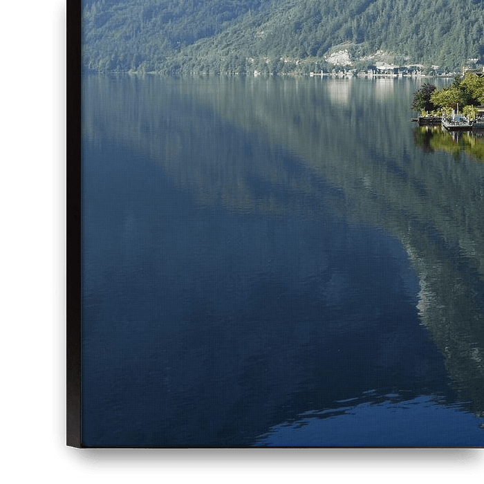 Buy this landscape artwork Lakeside village of Hallstatt with church in Austria by iPics Photography on canvas, ArtFrame, poster and wallpaper, printed on demand in high quality.