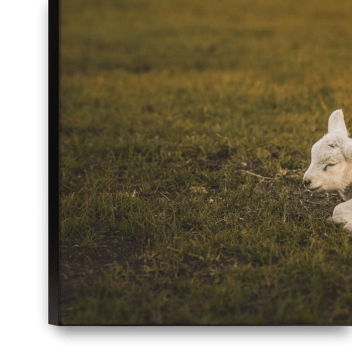 Buy this landscape artwork Lamb in meadow by Mayra Fotografie on canvas, ArtFrame, poster and wallpaper, printed on demand in high quality.
