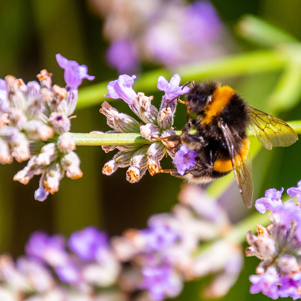 Close-up of a bee that just landed on a flower.