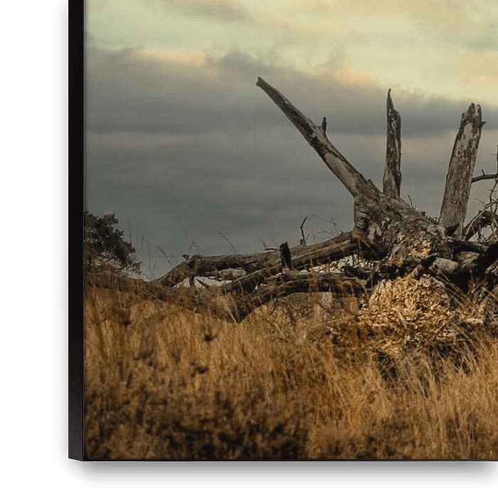South of Eindhoven lies a beautiful nature reserve with a landscape of open heathland. There I came across fallen trees with bizarre shapes. Bent like a gate, a view through to the sunset.