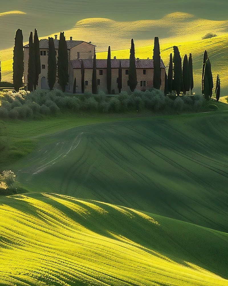Buy this landscape artwork Landscape in the sunrise glow by fernlichtsicht on canvas, ArtFrame, poster and wallpaper, printed on demand in high quality.