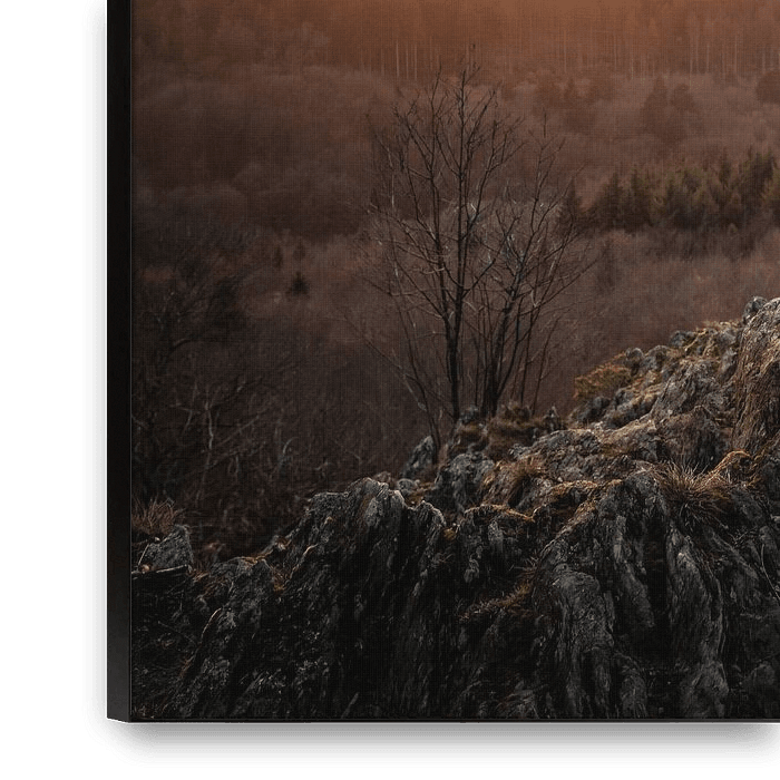 Buy this landscape artwork Landscape shot on a mountain into the valley for sunset Dramatic clouds by Fotos by Jan Wehnert on canvas, ArtFrame, poster and wallpaper, printed on demand in high quality.