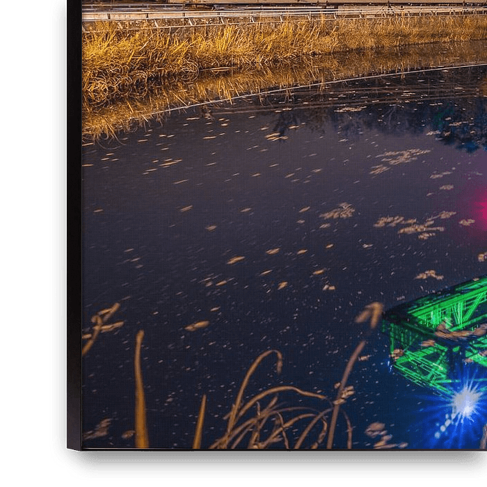 Buy this abstract artwork Landschaftspark Duisburg at night by Dennis Donders on canvas, ArtFrame, poster and wallpaper, printed on demand in high quality.