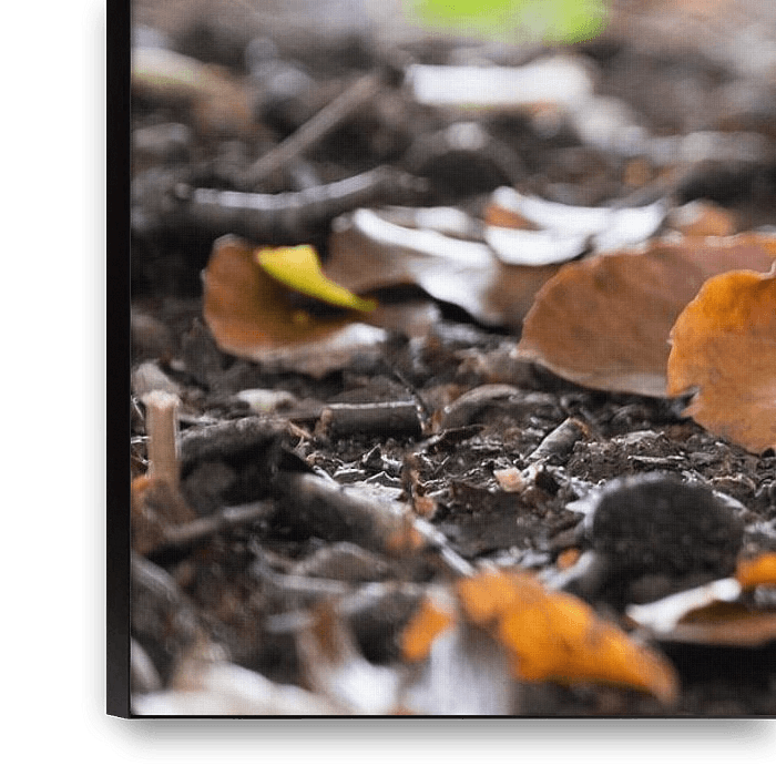 Klein leven verborgen tussen de bladeren op de herfstige bosgrond in Oosterbeek.