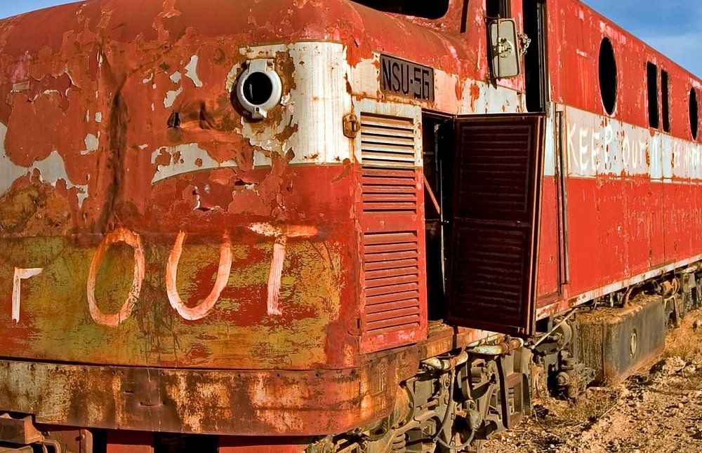 Marree, once an important railway junction on the legendary Ghan line, has been transformed over the years into a huge open-air museum. Here she stands now, with the words "KEEP OUT - FOR SALE" on her nose, as if she still has a message for those who stray to her. Its rusty patina, the bursting colour and the bright red in contrast to the endless expanse - all this tells of the transience of progress, of the passage of time and the magic of standing still.