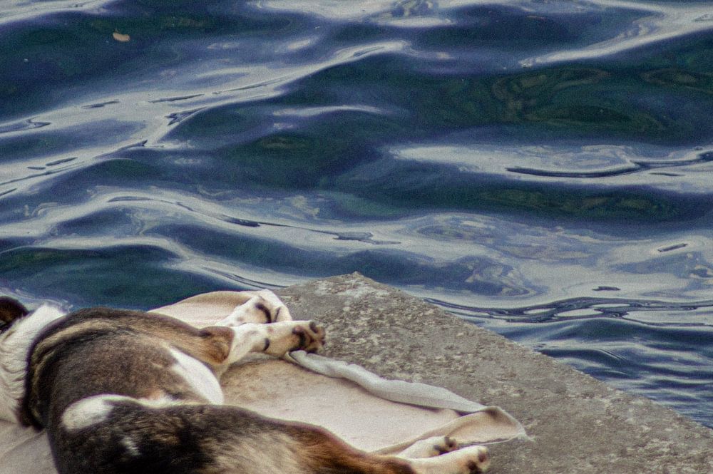 I took this photo in Croatia when I was walking along the sea and saw this dog lying so beautifully along the water.