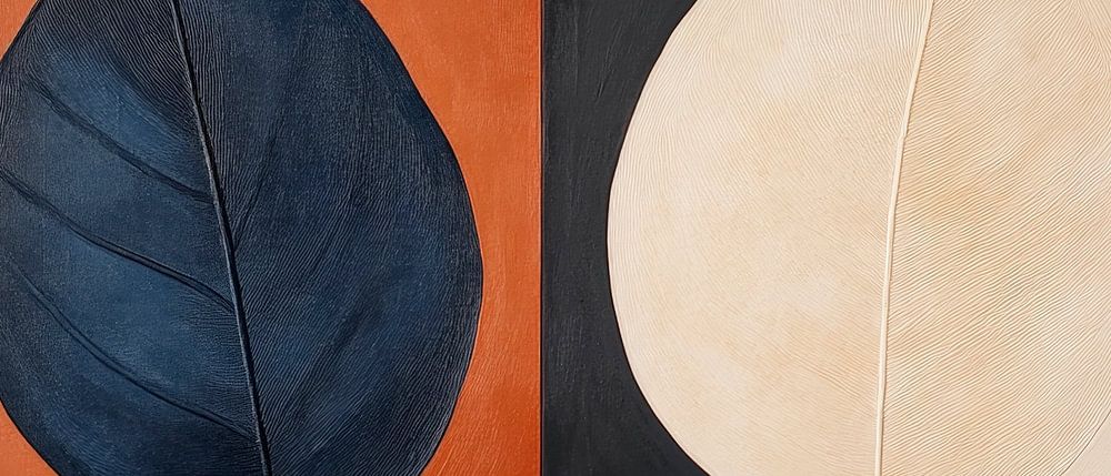 A fascinating interplay of colours and shapes unfolds, in which a stylised leaf contour stands out against warm earth tones. The gentle contrast between organic and geometric elements lends the room a calming depth. Ideal for the living room, it calms the mind and soul and creates a harmonious atmosphere.