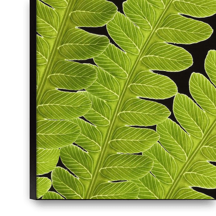 The leaf of an Ostrich fern in backlight. The black background makes the beautiful details of this leaf really stand out.