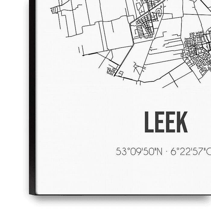Buy this abstract artwork Leek (Groningen) | Map | Black and white by Prints of Place on canvas, ArtFrame, poster and wallpaper, printed on demand in high quality.