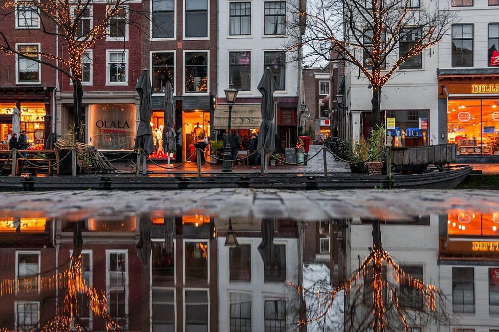 This picture reminds us of the charm of Leiden during the winter months, where the city has a peaceful and inviting atmosphere, perfect for creating warm memories during the holidays.