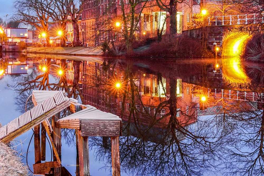 De stad Leiden in de vroege morgen op één van de vele mooie plekjes. De spiegelingen in het water, de karakteristieke lantaarns, bruggetjes en fraaie gevels maken het Leiden steeds weer tot een sprookje.