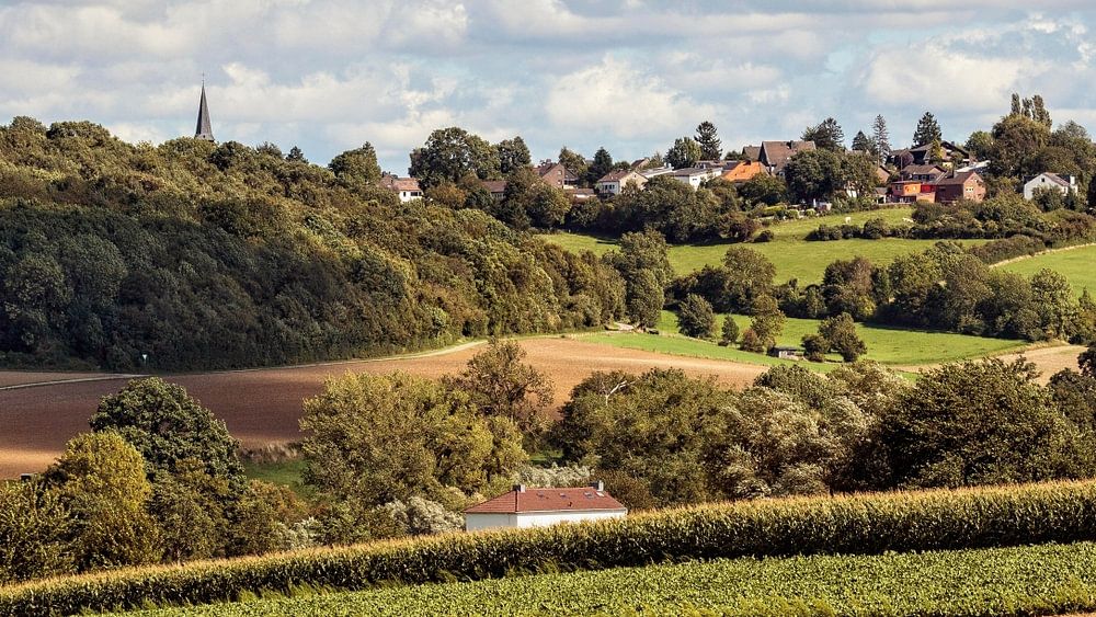 The fields around Lemiers and the German town Orsbach as seen from Vijlen in the Limburg Heuvelland (Netherlands)