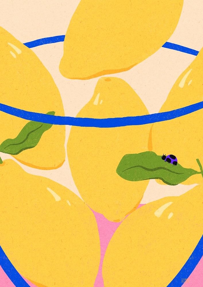 Buy Lemons in a Bowl Retro Illustration by Dirkie Nell on canvas, ArtFrame, poster and wallpaper, printed on demand in high quality.