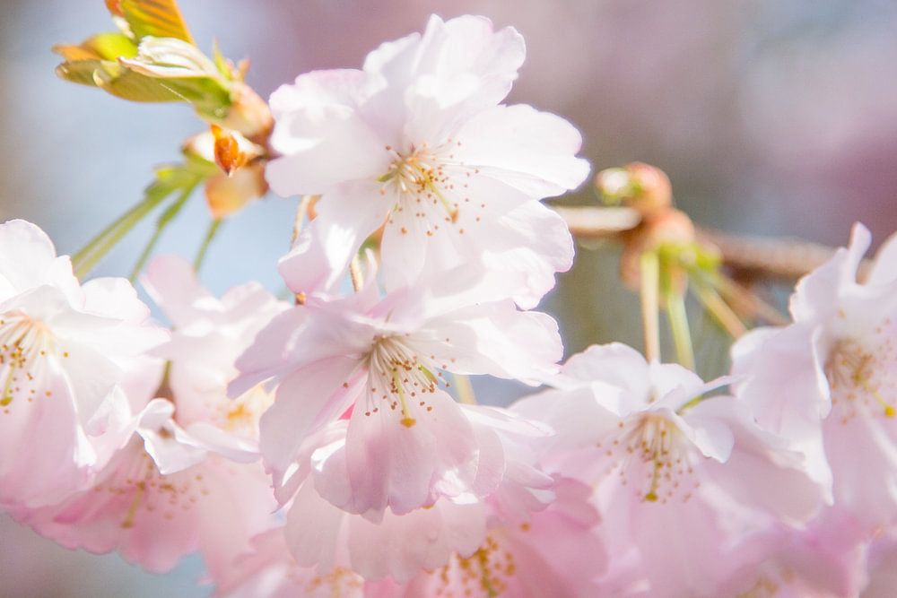 Roze lente bloesem, lichtblauwe lucht, het voorjaar , de lente is begonnen.