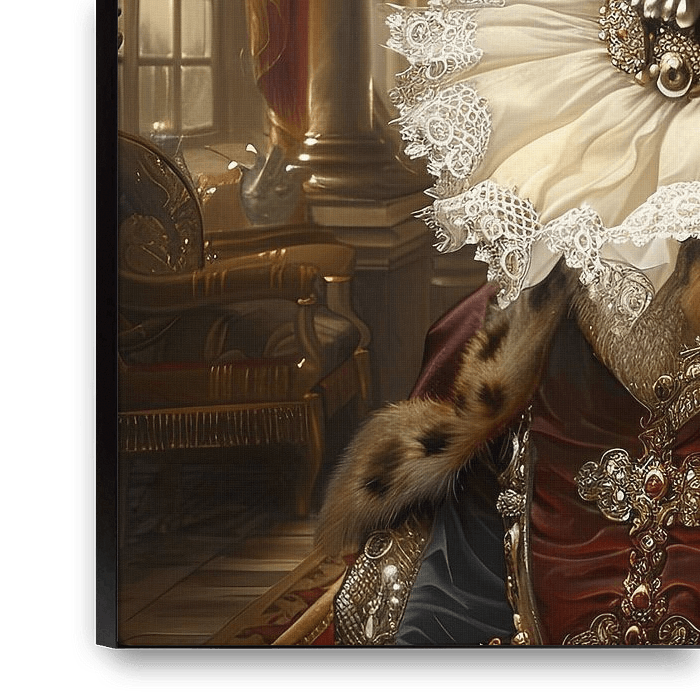 A breathtaking portrait of a leopard in royal baroque clothing. This work of art captivates with its precise details and the majestic presence of the leopard, dressed in opulent fabrics and sparkling jewellery. The skilful combination of traditional Baroque elegance and animal grace makes this painting a unique eye-catcher. Perfect for…