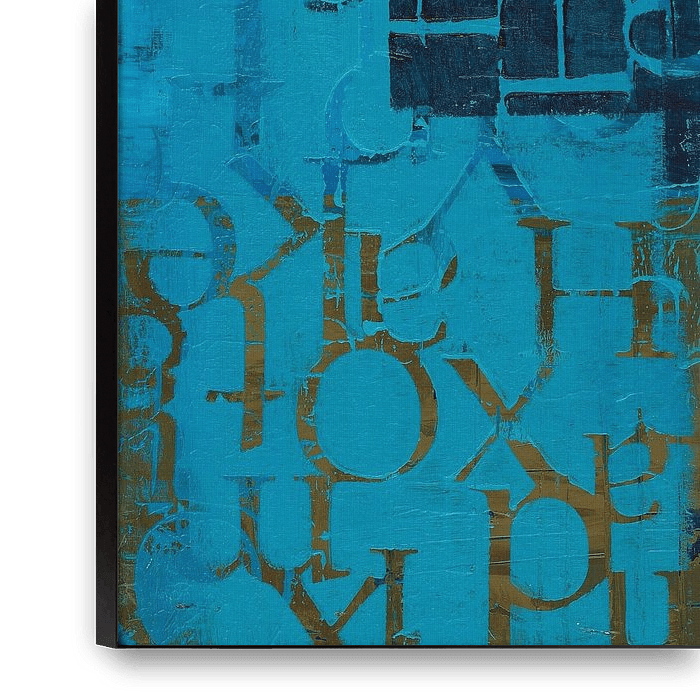 Buy this abstract artwork Letters Abstract in Blue and Brown by Western Exposure on canvas, ArtFrame, poster and wallpaper, printed on demand in high quality.