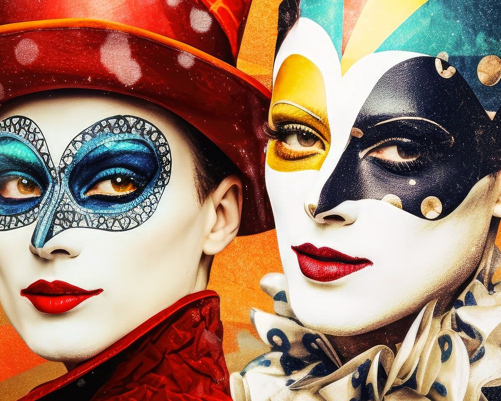 Life is a Feast, colourful masquerade portrait by Vlindertuin-Art