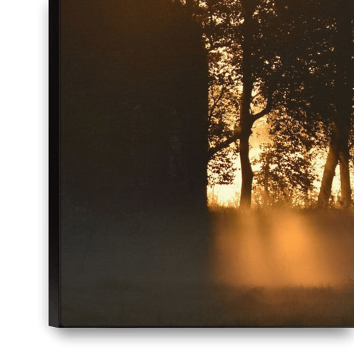 Mystical light shines through the trees as the patches of mist float above the Groningen land early in the morning.