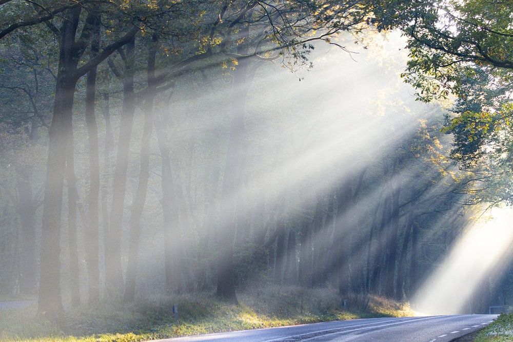 Such beautiful rays of light that I stopped my car in the morning, it was fortunately still quiet ...the light shows the road....