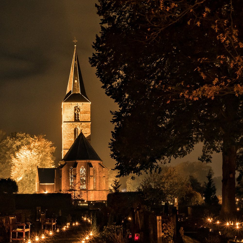 Buy the photo Light evening at the Jacobus church in Rolde by Fred van Bergeijk on canvas, ArtFrame, poster and wallpaper, printed on demand in high quality.