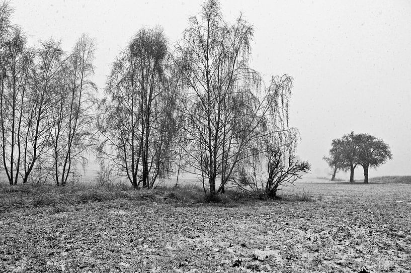 Buy this landscape artwork Light snowfall in the magical, wintry Oderbruch - monochrome by Silva Wischeropp on canvas, ArtFrame, poster and wallpaper, printed on demand in high quality.