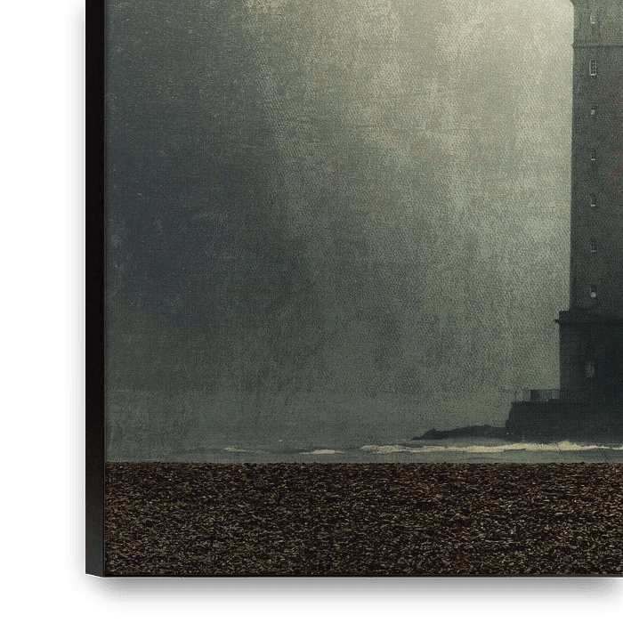 Lighthouse Phare du Cap de la Hague, Normandy, France on a foggy day - photography edited with textures