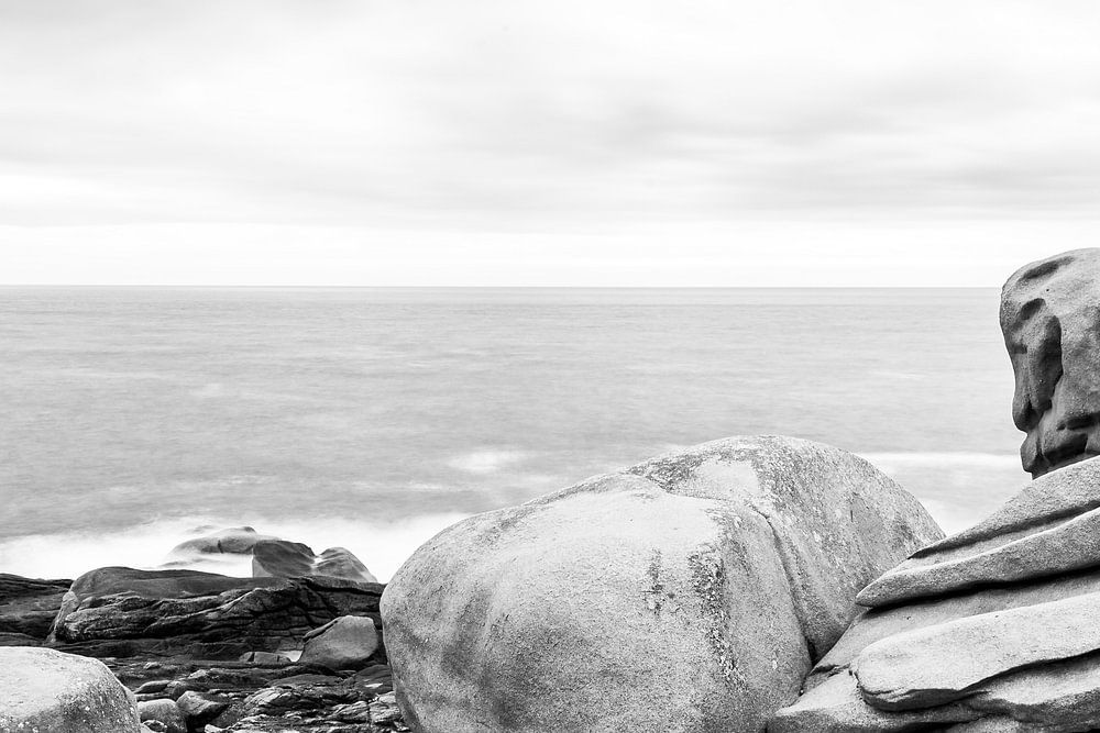 The lighthouse of Men Ruz on the coast at Ploumanach in the region of Brittany. This coastline is known for its pink color granite shoreline. This photo was taken during an overcast day in the Summer of 2015. LEE ND filters were used for this photo and a shutter speed of a few seconds was applied. Version in black and white