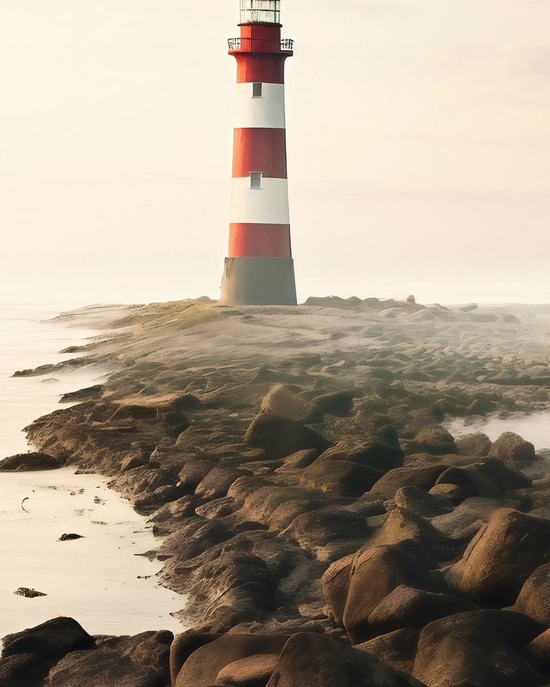 Buy this landscape artwork Lighthouse in the morning mist by fernlichtsicht on canvas, ArtFrame, poster and wallpaper, printed on demand in high quality.