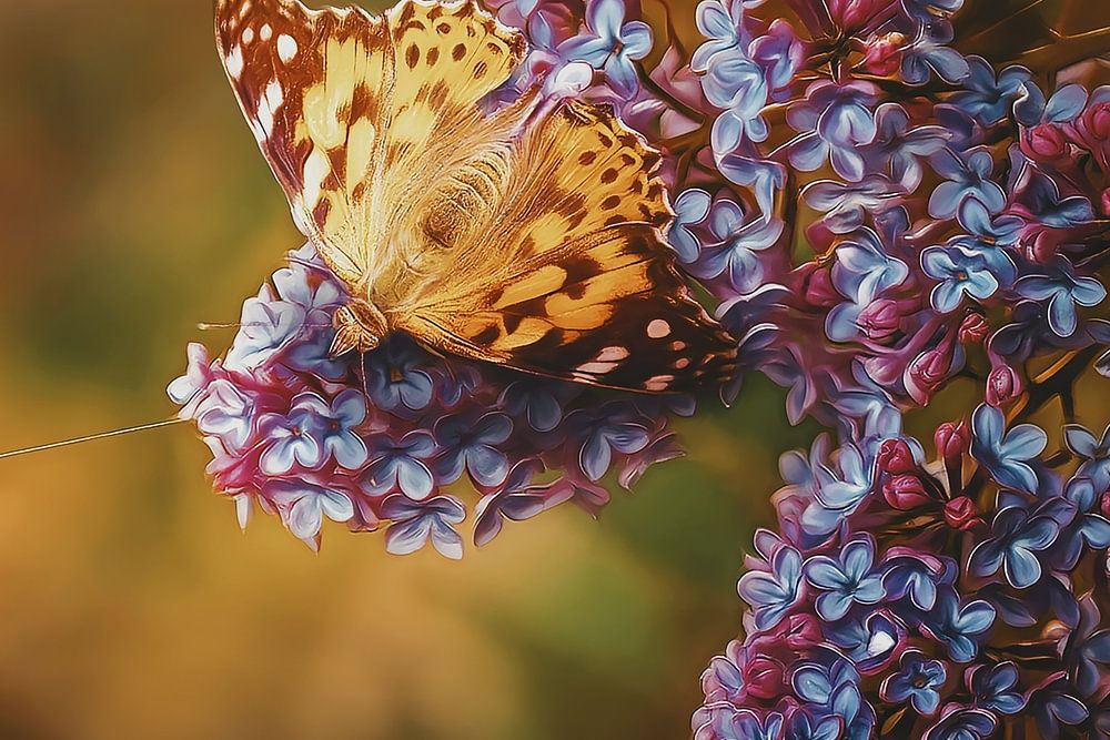 Buy this flower art Lilac with butterfly by Aline Nijland on canvas, ArtFrame, poster and wallpaper, printed on demand in high quality.
