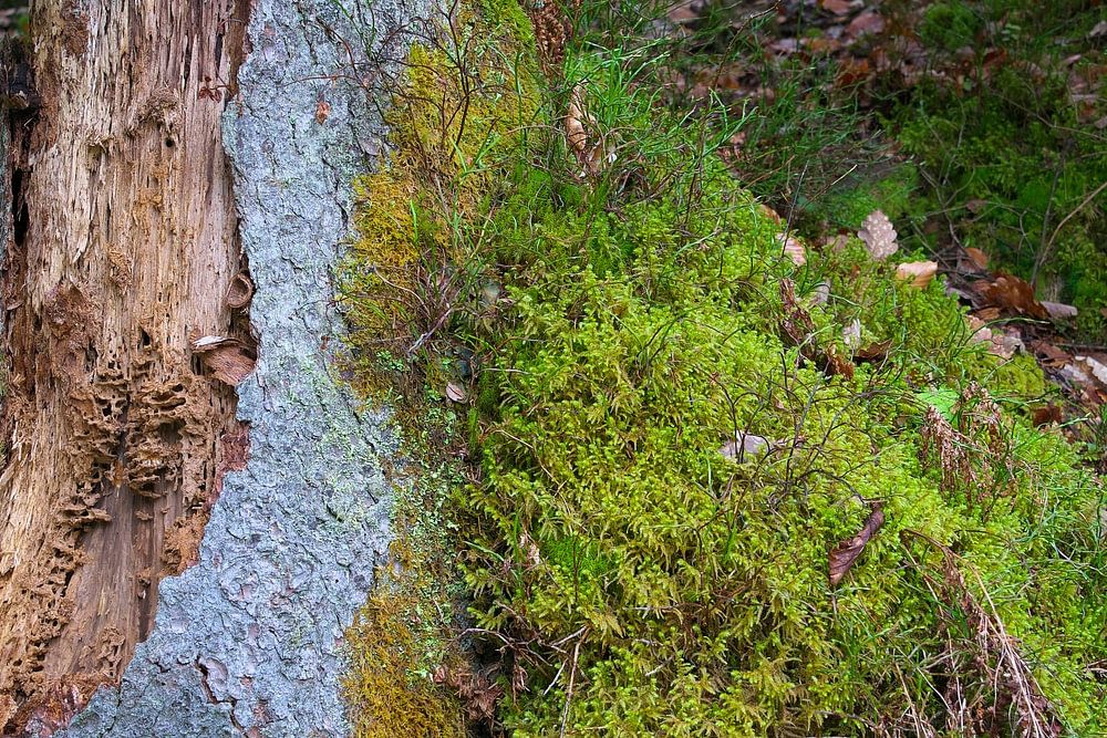 Old tree stump with moss and foliage