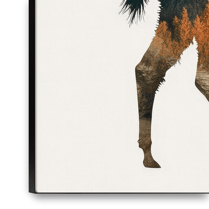A harmonious combination of nature and animal creatures unfolds here, where gentle mountain landscapes are woven into the body of a llama. The warm colours and impressive attention to detail lend the room a calming atmosphere. Perfect for the living room, this work of art invites you to linger and dream.