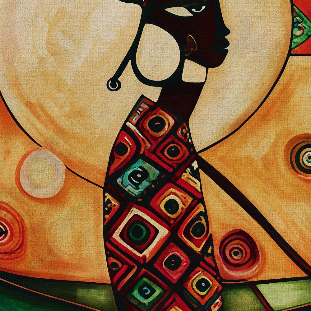 As you gaze upon this work of art, you can almost feel the warmth of the African sun on your skin and hear the gentle lapping of the water against the boat. The vivid brilliance of the colors transports you to the heart of Africa, where life's essentials are procured with perseverance and purpose.