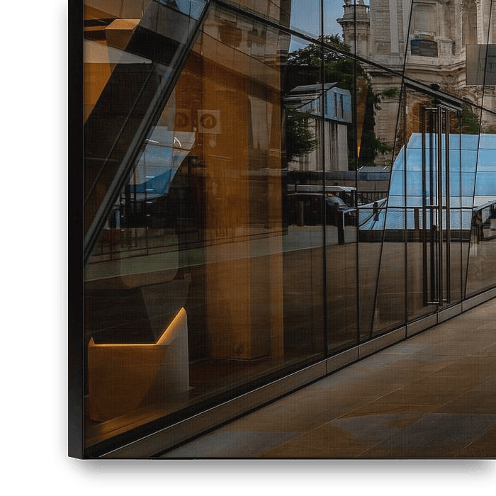 St. Paul's Cathedral in London is reflected in the shop windows of a number of shops near the world-famous Cathedral.