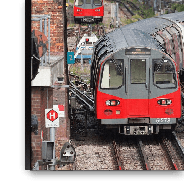 A jumble of Underground trains at Finchley Central where the Northern line branches to Mill Hill East and High Barnet.