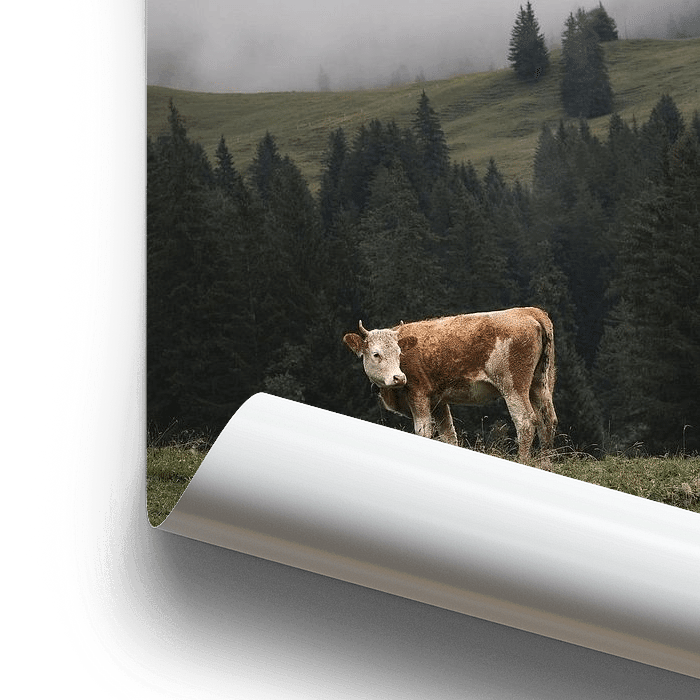 Buy this cow art Lonely cow in the Alps | Switzerland | travel photography by Laura Dijkslag on canvas, ArtFrame, poster and wallpaper, printed on demand in high quality.