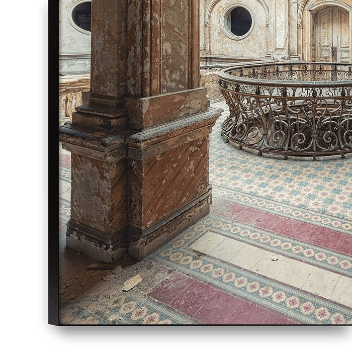 Buy the photo Lost Places -Staircase in the abandoned castle - Abandoned Places by Carina Buchspies on canvas, ArtFrame, poster and wallpaper, printed on demand in high quality.
