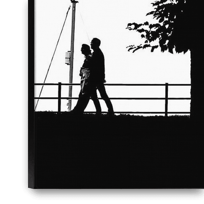 Couples in love on the boardwalk. Black and white