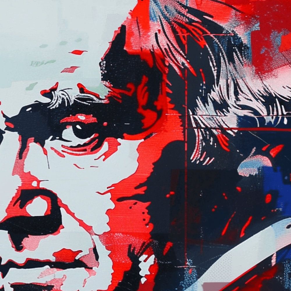 This painting captures the essence of Ludwig van Beethoven in a swirl of colour and emotion. His profile, powerful and determined, dominates the canvas, while red and blue hues dance around him. The colours are not just colours; they are an expression of his passionate music, his turbulent emotions and his indomitable spirit. The painting is a symphony of colours, a visual poem that captures the composer's soul.