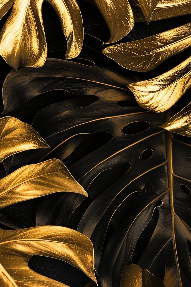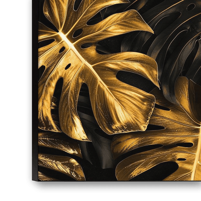 This sophisticated design brings the natural beauty of the monstera plant to life with a modern twist. Golden leaves shine against a deep black background, creating a luxurious and timeless look. Perfect for the contemporary living room or stylish office, where the stylish contrast and simplicity of nature will be a striking addition. The rich texture and metallic sheen make each leaf unique, as if the light falls on it differently every time. This piece is an ode to the natural world and its infinite elegance, captured in a design that fits equally well in minimalist and richly decorated spaces.